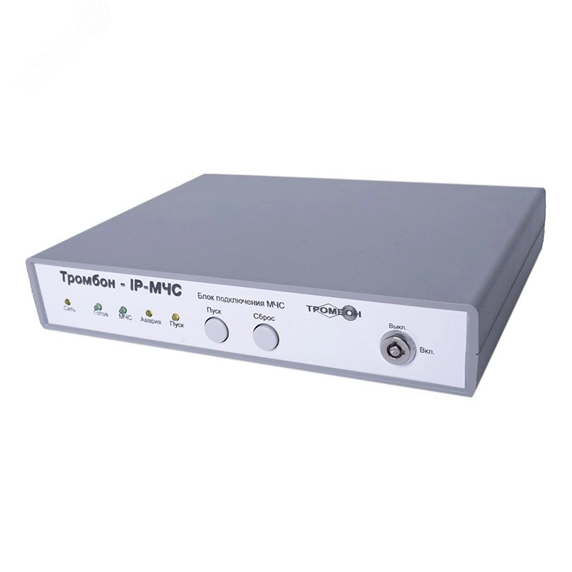 Предназначен для стыковки системы звукового вещания Тромбон IР с блоками централизованного запуска каналов связи МЧС. В частности с прибором РАСЦО - П166Ц-БУУ-02, БРУ-М и др. Блок ''Тромбон IP-МЧС'' принимает аналоговые сигналы управления и голосовые сообщения, преобразует их в цифровой формат и передает в систему звукового вещания Тромбон IР.