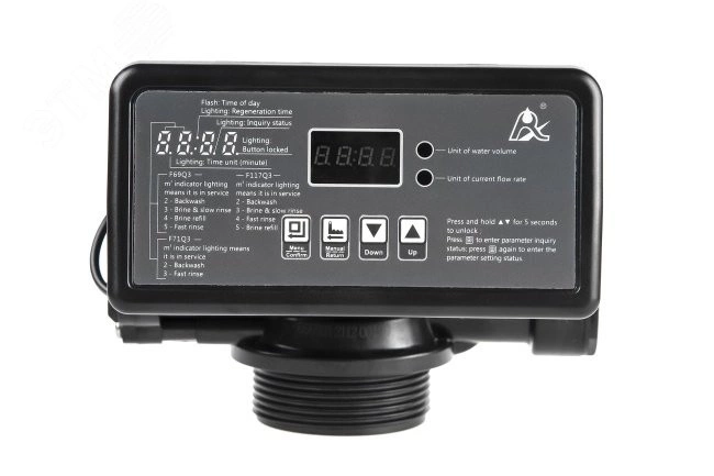 Блок управления автоматический по таймеру безреагентный для фильтров. Предназначен для коммутации потоков воды внутри корпуса фильтра с зернистой загрузкой. Вход/выход - 3/4'', дренаж - 3/4'', посадочный размер - 2,5'', диаметр трубы ДРС - 1,05'', максимальная производительность, м3/ч - 2, размер корпуса фильтра - 6''–10'', протестирован на рабочее давление - 2-6 атм, рабочая температура - 4-38 градусов Цельсия, совместимость с загрузками - инертные (осветление воды), каталитические (окисление железа, марганца, сероводорода), сорбционные (активированный уголь).
