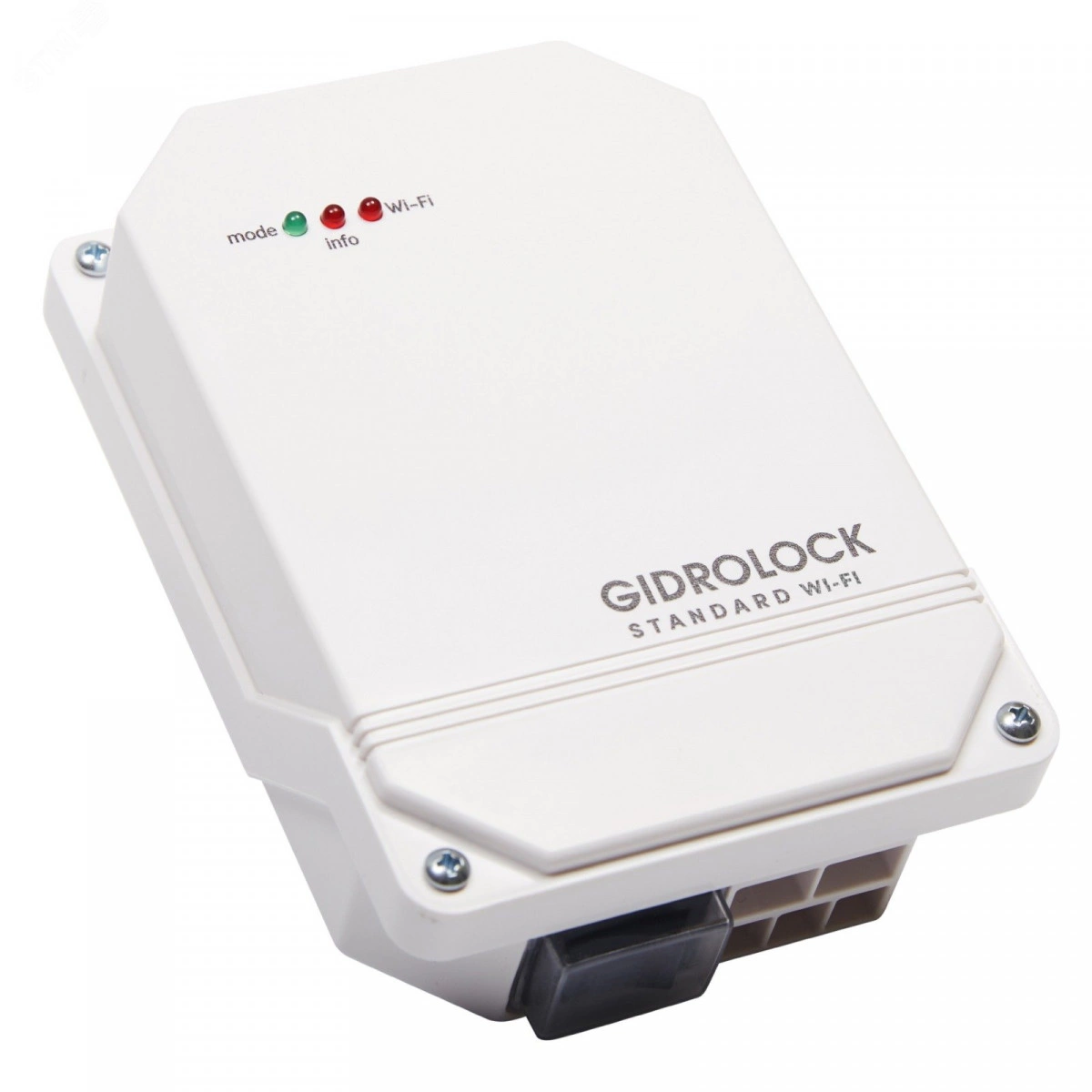 "Блок управления GIDROLOCK STANDARD WI-FI используется для мониторинга состояния проводных датчиков WSP, WSP2, радиодатчиков WSR и управления электрическими шаровыми кранами. Устройство применяется для защиты от аварий в системах водоснабжения и отопления. Может быть подключено к облачному сервису Умного дома Tuya ""Smart Life"" по Wi-Fi. Система отлично работает с Яндекс Алисой (команды открыть/ закрыть).Когда вода попадает на электроды датчика протечки, блок управления автоматически закрывает подачу воды, и на мобильное устройство отправляется уведомление об аварии. Кроме того, в такой ситуации включается световое и звуковое оповещение."