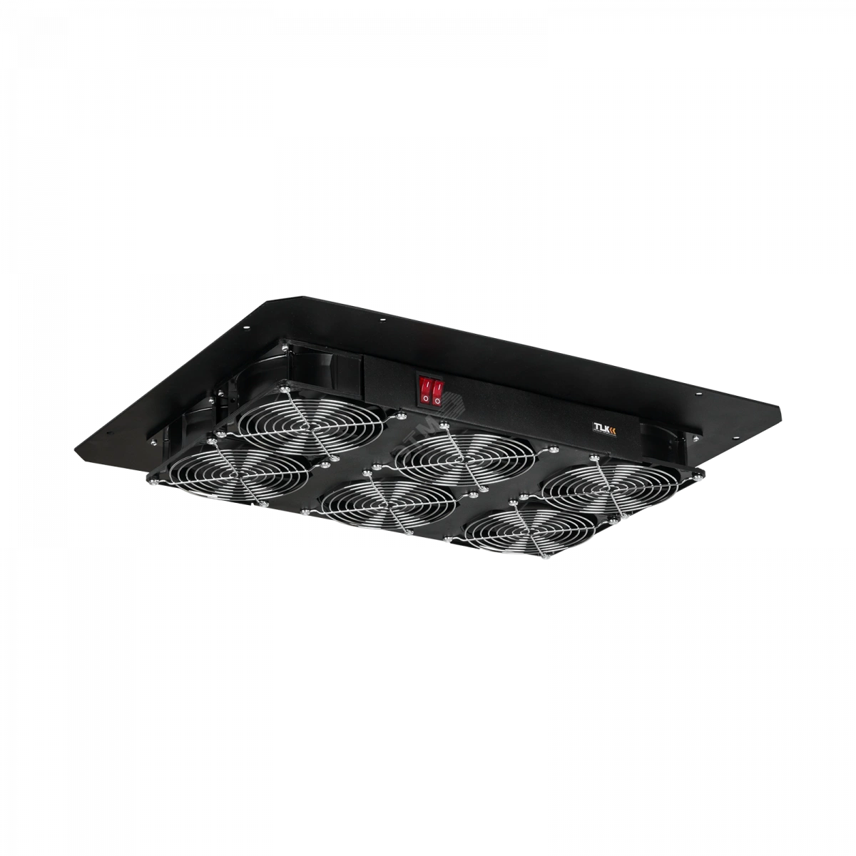 Вентиляторный блок предназначен для принудительного охлаждения активного оборудования, установленного в телекоммуникационном шкафу, путем отвода теплых воздушных масс из внутреннего объем шкафа. Блок устанавливается в специальные ниши на крыше или в основании напольных шкафов TLK. При этом шкафы глубиной (600 мм) предусматривают только верхнее размещение вентиляторного блока. Питание вентиляторного блока на 2 вентилятора осуществляется с помощью подключения шнура питания к сети с напряжением 220 В, 50 Гц. Разъем питания на вентиляторном блоке типа IEC-60320 C14. Вентиляторы закрыты решетками с обеих сторон. Блоки с маркировкой ''F'' также имеют встроенные фильтры для предотвращения засасывания пыли во внутреннее пространство шкафа. Несущая конструкция вентиляторных блоков выполнена из 2 мм стали и оснащена четырьмя или шестью вентиляторами.
