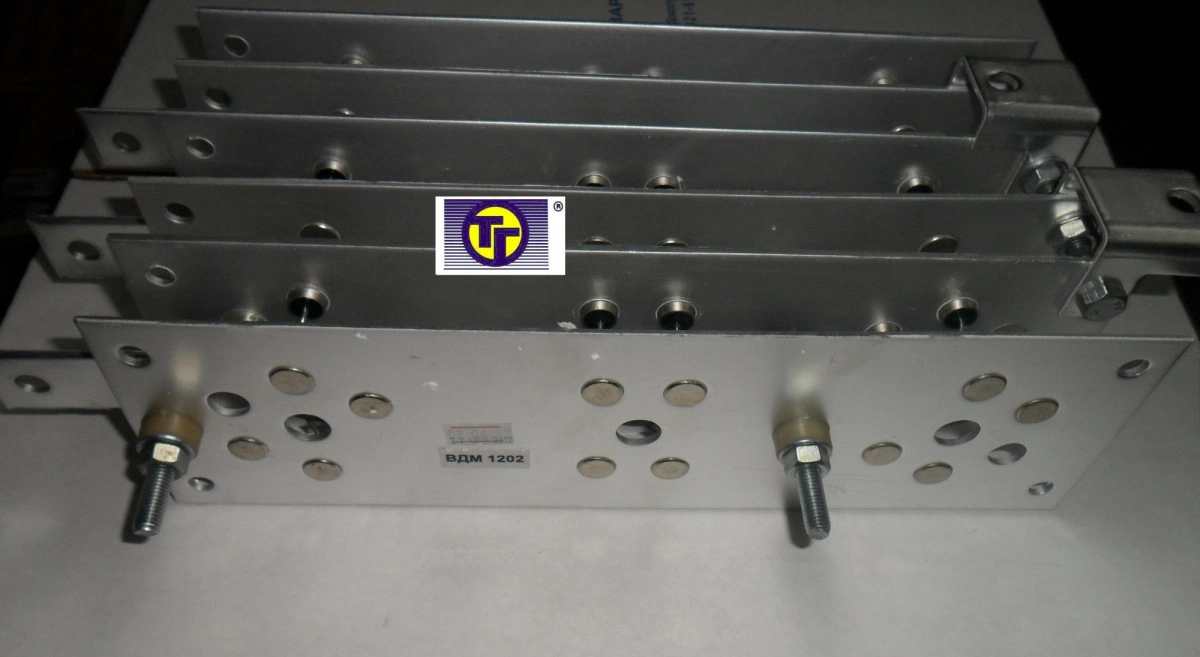 Блок выпрямительный к ВДМ-1202С собран на диодах без применения тиристоров, запрессованными в пластины радиатора для эффективного охлаждения выпрямительной сборки толщиной до 3мм. Диоды соединены группами в трёхфазную кольцевую схему. Такой способ позволяет применять диоды малой мощности, не требующие громоздких радиаторов охлаждения. В целом, конструкция позволяет снизить себестоимость детали, при этом имея достаточный запас по току в данном габарите. На некоторых выпрямительных блоках ставится по два блока тем самым достигая большего тока при необходимости в зависимости от аппарата на котором вышел из строя данный диодный мост (выпрямительный блок).