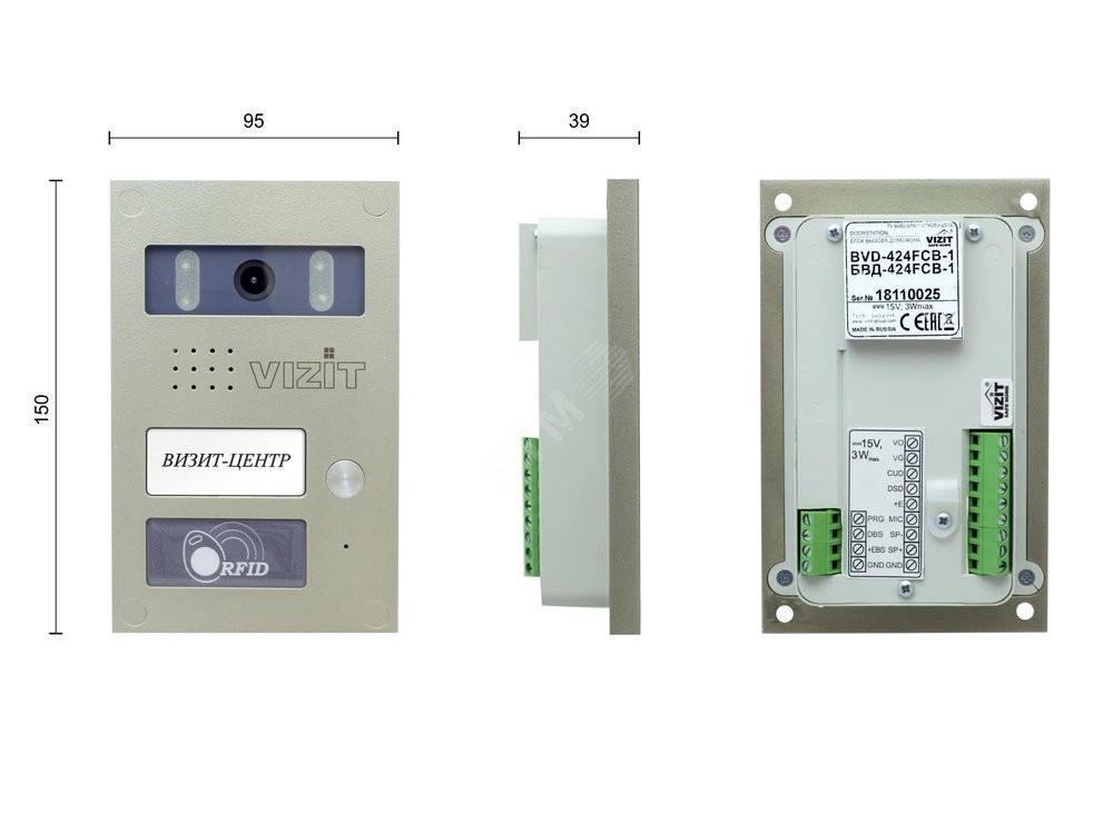 Блок вызова БВД-424FCB-1 используется как составная часть видеодомофона VIZIT для 1 абонента и используется совместно с блоками управления БУД-485 и БУД-430(M, S). Вызов абонента осуществляется путем нажатия кнопки вызова. Блок имеет дуплексную громкоговорящую связь с абонентом, встроенный считыватель ключей VIZIT-RF3, звуковую сигнализацию режима открывания замка, видеоконтроль на экране монитора, а также встроенную телекамеру цветного изображения с функцией день-ночь.