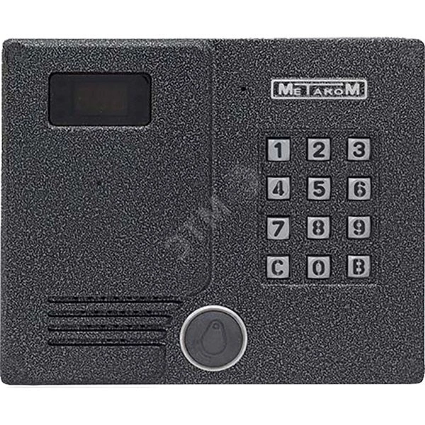 Предназначен для установки в многоквартирных домах, офисах для организации селекторной связи с цифровой системой адресации с числом абонентов до 255. Имеет встроенный считыватель бесконтактных RFID ключей с рабочей частотой 125 кГц. В качестве абонентских ключей используются бесконтактные брелоки METAKOM поддерживающие Proximity технологию, стандарт ЕМ-Marin (RF ключи). В качестве оконечных устройств, устанавливаемых у абонентов, рекомендуются трубки квартирные переговорные (ТКП) типа ТКП-12D или другие, предназначенные для домофонов с цифровой системой адресации. Домофон обеспечивает подачу сигнала вызова на ТКП абонента, дуплексную связь посетителя с абонентом, дистанционное открывание замка по сигналу от ТКП. Замок также может быть открыт с помощью RF-ключа, с помощью кода или нажатием кнопки ВЫХОД.