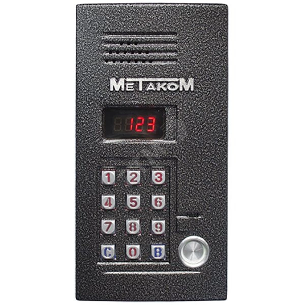 Блок вызова МЕТАКОМ МК2012-ТМ4EN представляет собой специализированную микропроцессорную систему, предназначенную для установки в многоквартирных домах, офисах, а также для организации системы селекторной связи с числом абонентов до 1500 (при организации системы ''калитка-подъезд''). В качестве абонентских ключей используются электронные ключи METAKOM TM2002, МЕТАКОМ TM2003(A,B) или Dallas iButtontm - DS1990A. В качестве оконечных устройств рекомендуются трубки квартирные переговорные (ТКП) типа ТКП-01, ТКП-05М, ТКП-06М, ТКП-10М, ТКП-12М, ТКП-14М или другие, предназначенные для домофонов с координатной системой адресации производства МЕТАКОМ. Блок вызова обеспечивает подачу сигнала вызова на ТКП абонента, дуплексную связь посетителя с абонентом, дистанционное открывание замка по сигналу от ТКП. Замок также может быть открыт с помощью ТМ-ключа, с помощью кода или нажатием кнопки ВЫХОД.