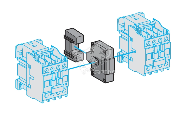 Устройство механической взаимной блокировки серии EasyPact TVS Schneider Electric для контакторов LC1E06...E65, предназначено для сборки реверсивных пускателей. Механическая блокировка является элементом системы безопасности, она исключает возможность одновременного замыкания контактов силовой цепи двух контакторов.