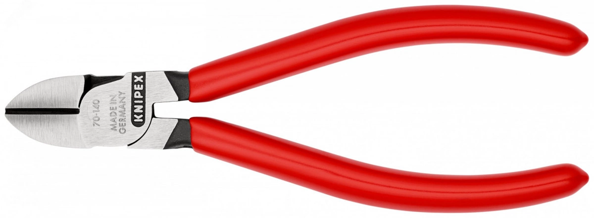 70 01 140 SB Бокорезы кусачки боковые, абсолютно необходимые для разнообразных работ. высококачественный материал и прецизионная обработка для длительного срока службы. прецизионные режущие кромки для мягкой и твердой проволоки. чистый рез тонкой медной проволоки, даже кончиками кромок. режущие кромки дополнительно закалены токами высокой частоты до твердости примерно 62 HRC. удлиненная форма головки для применения в труднодоступных местах. Новое поколение классических боковых кусачек KNIPEX с улучшенными характеристиками. Передача усилия реза увеличена на 20 %, по сравнению с предыдущей моделью. карта самообслуживания/ блистер. - Параметры резания/ мягкая проволока (диаметр) - 4,0mm - Параметры резания/проволока средней твёрдости (диаметр) - 2,5mm - Параметры резания/ твёрдая проволока (диаметр) - 1,8mm