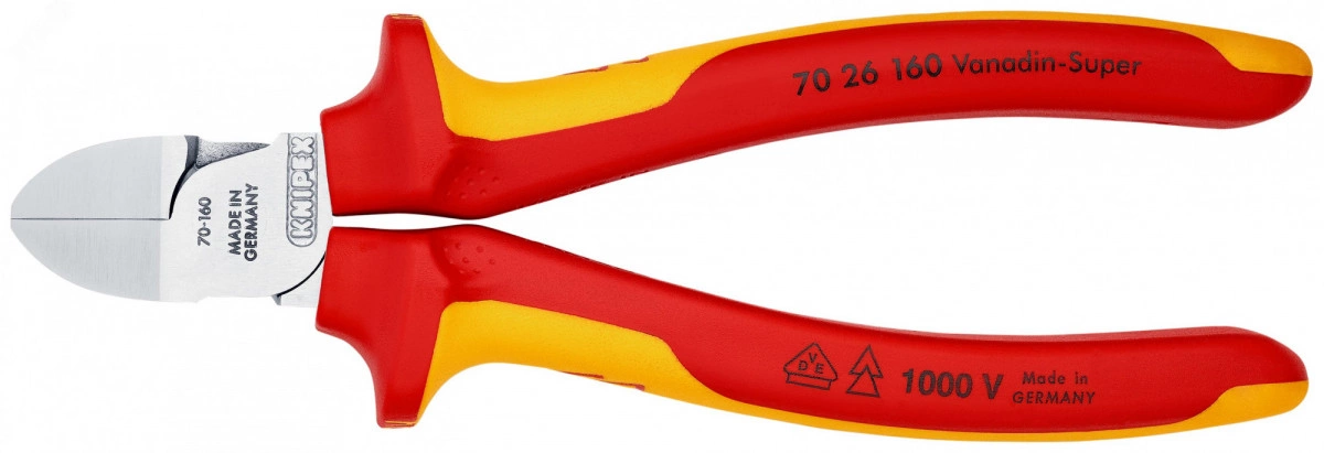 Бокорезы VDE 1000V режущие кромки с маленькой фаской резка - мягкая проволока 4мм проволока средней твердости 3мм твердая проволока 2мм L=160мм 62HRC хромированные 2-компонентные рукоятки