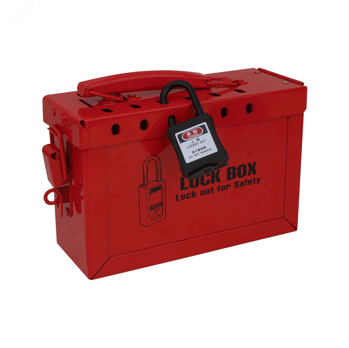 Бокс групповой блокировки. Изготовлен из стали с нанесением термоустойчивого пластика. Размер 233?195?95 мм. Имеет 12 отверстий диаметром 7 мм для замков безопасности.