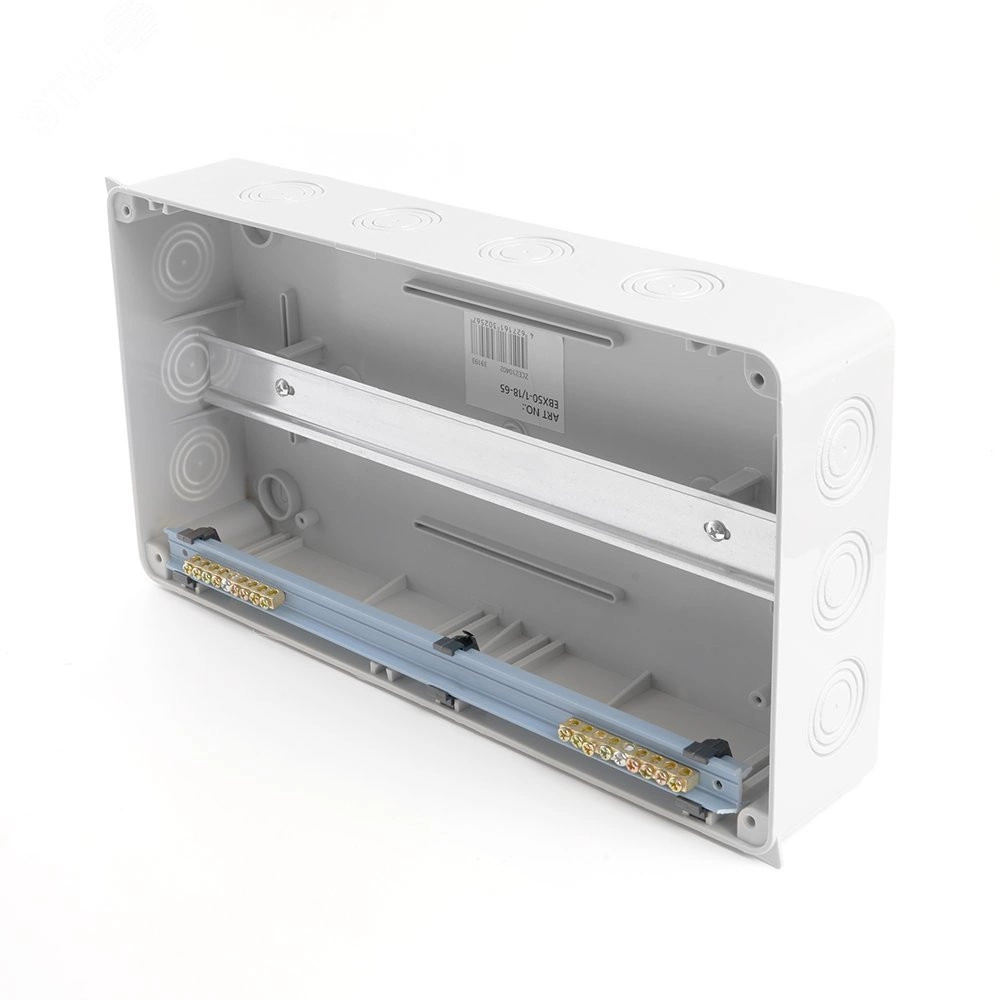 Бокс настенный EBX50-1/18-65 предназначены для сборки щитов распределения электроэнергии, защиты сетей от токов перегрузки и короткого замыкания, а также установки различного модульного оборудования. Преимущества: - Дверца выполнена из ударопрочного поликарбоната - Корпус устойчив к УФ - излучению (цвет не изменяется со временем) - Высокая степень защиты IP65 (позволяет применять данную серию в помещениях с повышенным содержанием пыли и уровнем влажности) - Полная комплектация (DIN - рейка, н