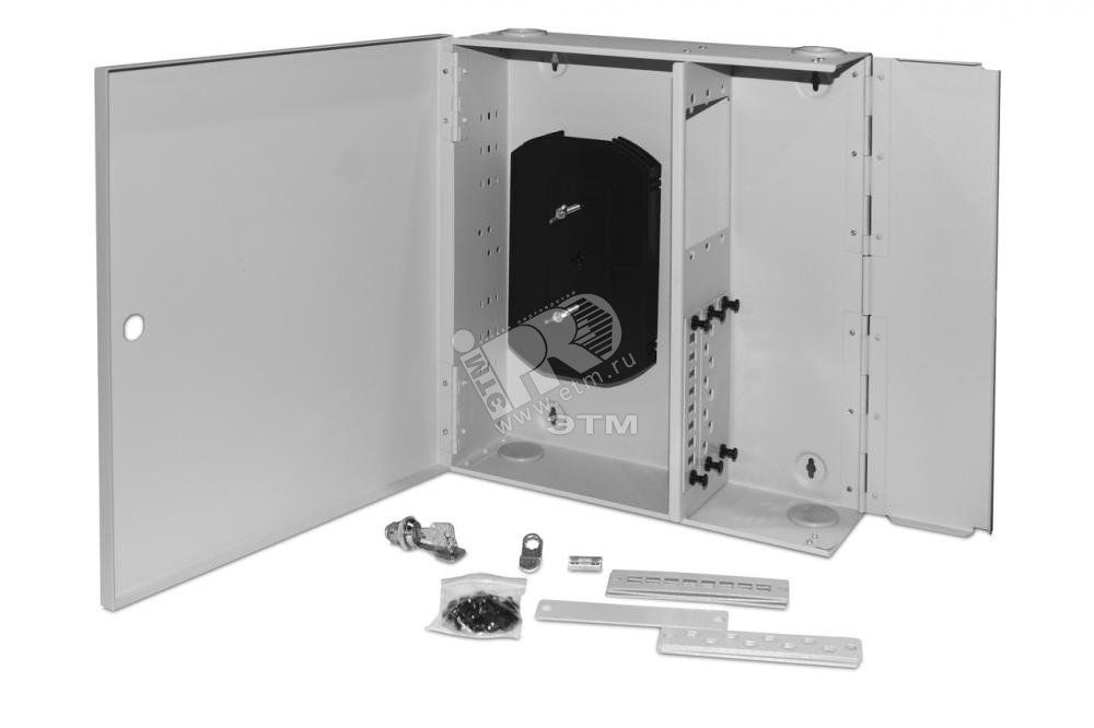 Бокс оптический универсальный настенный от 8 до 48 портов (SC/duplex LC/ST/FC) со сплайс пластиной без пигтейлов и проходных адаптеров серый