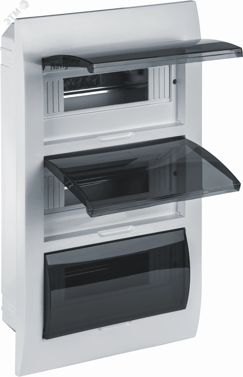 Боксы распределительные ЩРН(В)-П (щиты распределительные навесные (встраиваемые) пластиковые) Navigator серии NSS-DBW(I) предназначены для установки модульного оборудования управления, защиты и контроля (автоматические выключатели, устройства защитного отключения, таймеры, счетчики, реле и т.д.), а также его защиты от внешнего воздействия и несанкционированного доступа. Применяются внутри жилых, офисных, производственных и промышленных помещений.