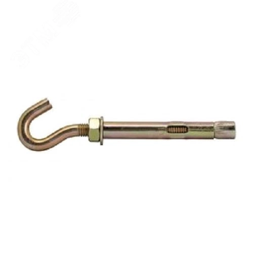 Анкер с крюком (полукольцом) представляет собой крепежное изделие в виде стальной шпильки с гайкой и полукольцом на конце. Предназначен для крепления тяжелых съемных  конструкций к основаниям из бетона, кирпича и т.п.