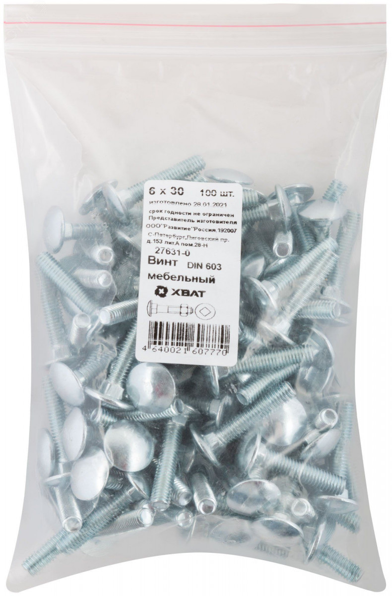 Полное описание: Болт DIN603 М6х30 мебельный оцинкованный (100 шт)