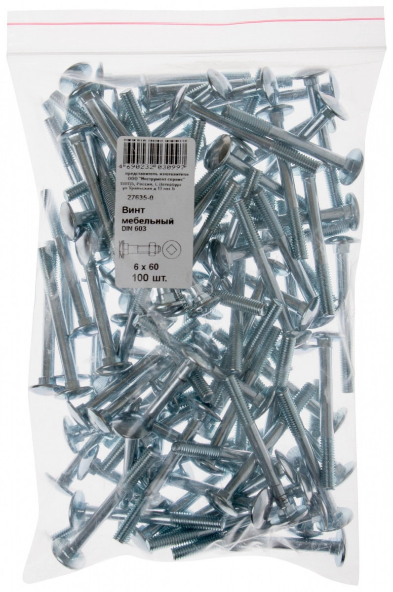 Полное описание: Болт DIN603 М6х60 мебельный оцинкованный (100 шт)