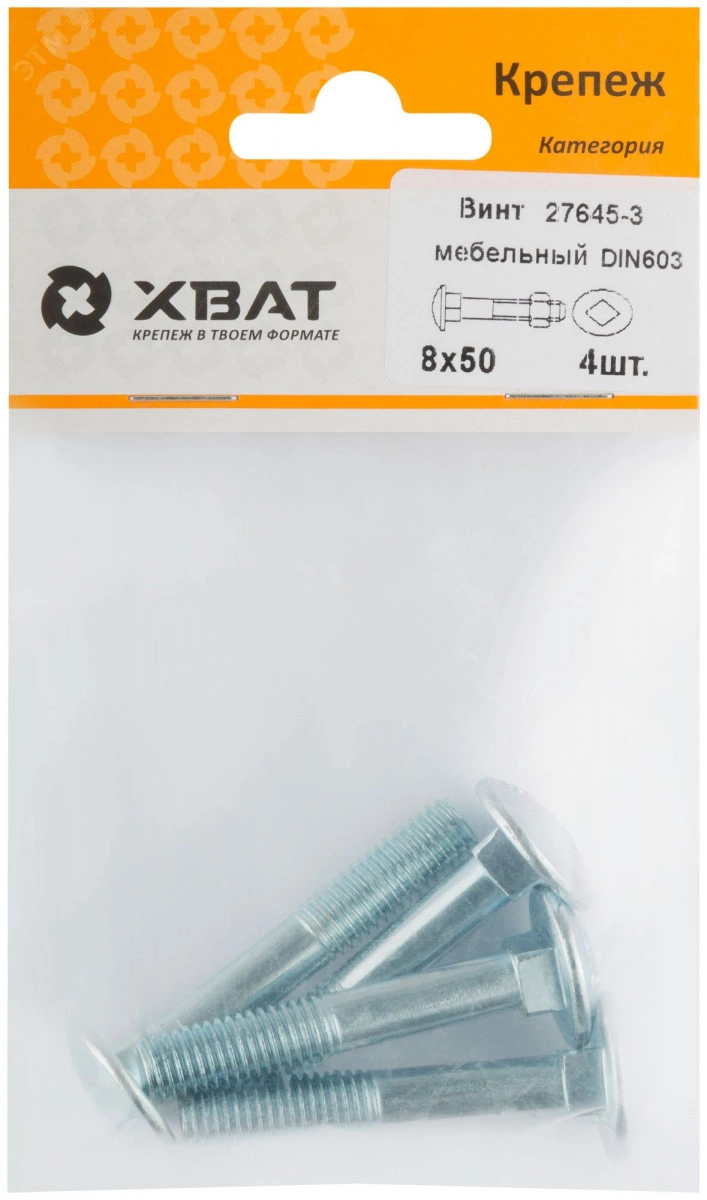 Болт DIN603 М8х50 мебельный оцинкованный (4 шт)