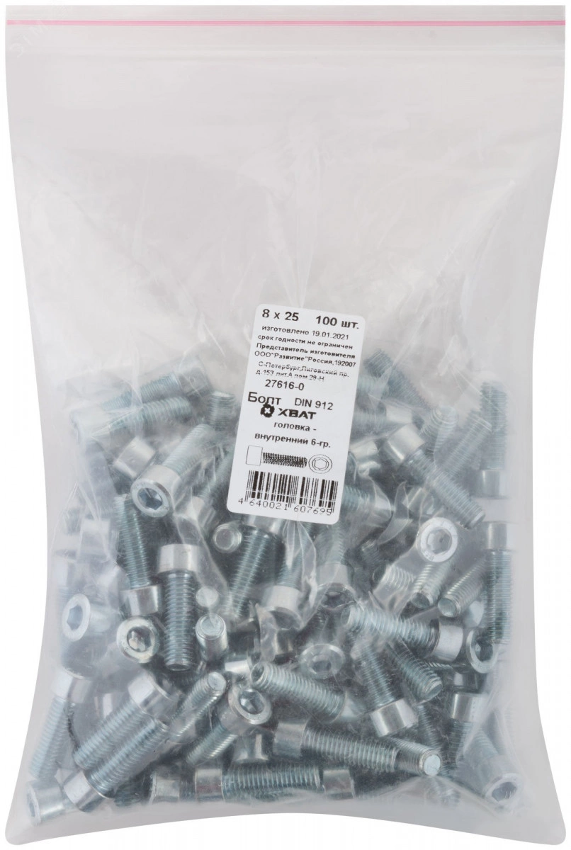 Болт DIN912 М8х25 внутренний шестигранник оцинкованный (100 шт)