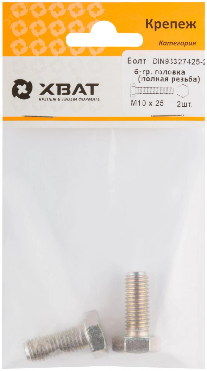Болт DIN933 М10х25 шестигранная голова полная резьба оцинкованный (2 шт)