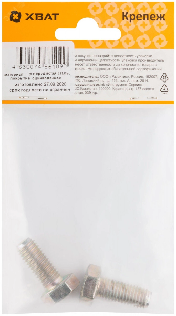 Болт с шестигранной головой под гаечный ключ и полной метрической резьбой. Имеет защитное цинковое покрытие. Используется совместно с гайками и шайбами соответствующих размеров.