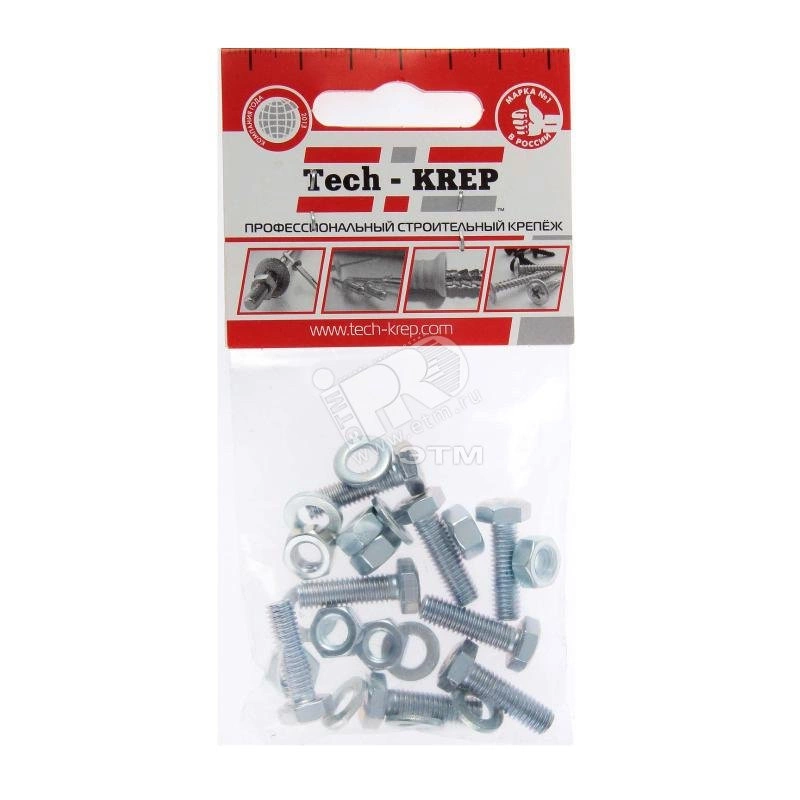 Болт DIN933 М10х30 шестигранная голова полная резьба оцинкованный + гайка + шайба (2 шт)