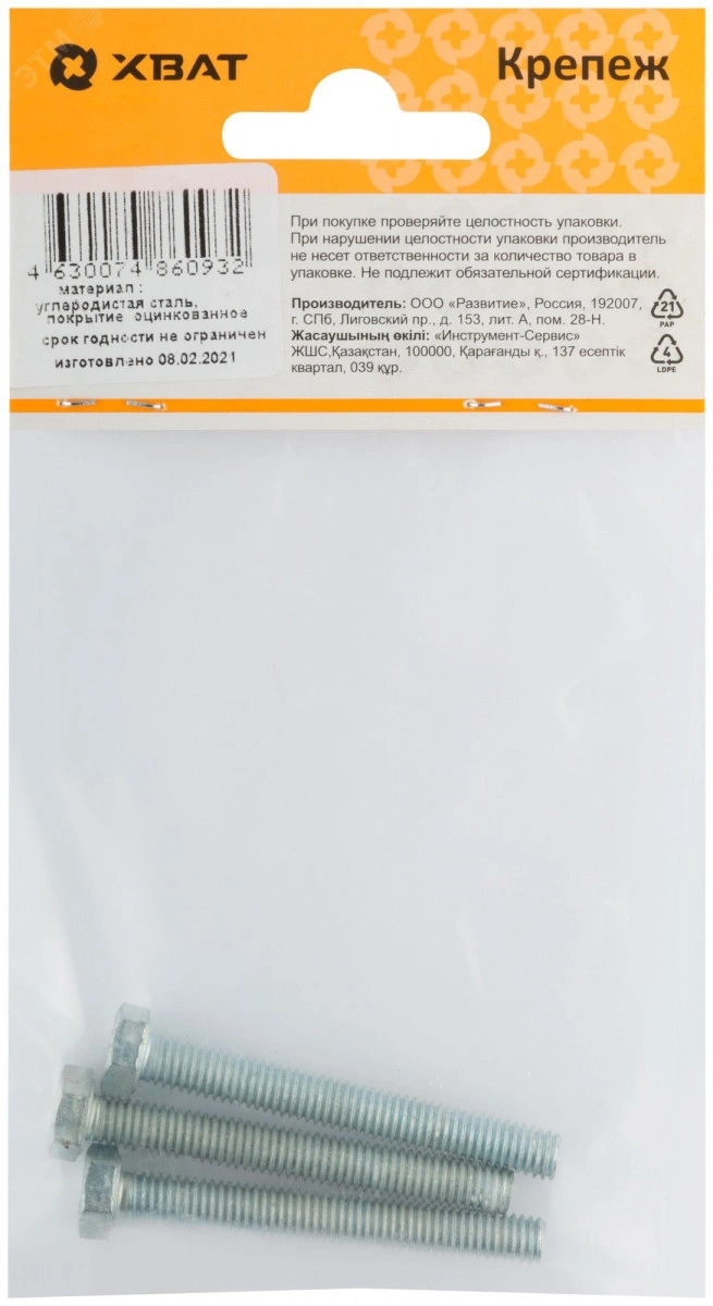 Болт с шестигранной головой под гаечный ключ и полной метрической резьбой. Имеет защитное цинковое покрытие. Используется совместно с гайками и шайбами соответствующих размеров.