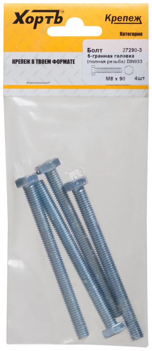 Болт DIN933 М8х90 шестигранная голова полная резьба оцинкованный (4 шт)
