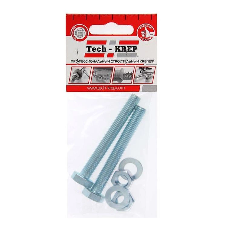 Полное описание: Болт DIN933 с шестигранной головкой М8х100+гайка+шайба оцинк. (уп.2шт) Tech-KREP 112725