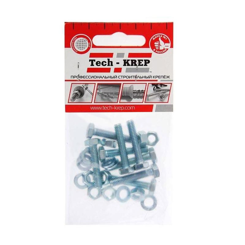 Болт DIN933 с шестигранной головкой М8х40+гайка+шайба оцинк. (уп.4шт) Tech-KREP 112723