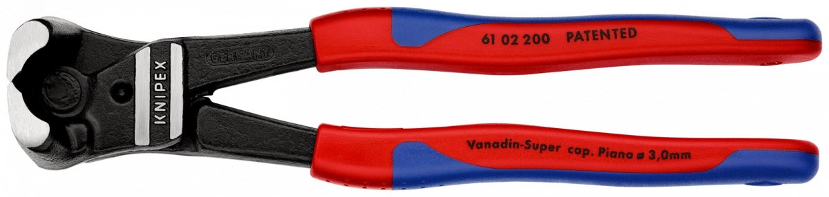 61 02 200 Болторез торцовый Сильный, компактный, комфортный. особо высокая режущая способность при меньших усилиях благодаря оптимальной передаче силы. ручки изогнуты для лучшего захвата. с длинными ручками в двухцветных многокомпонентных чехлах без упоров - для большего удобства в использовании и более простой транспортировки. с большой опорной поверхностью чехлов ручек для лучшего распределения усилий и более удобного использования. - Параметры резания/ мягкая проволока (диаметр) - 1?–?6mm - Параметры резания/проволока средней твёрдости (диаметр) - 4,0mm - Параметры резания/ твёрдая проволока (диаметр) - 3,5mm - Параметры резания/ рояльная струна (диаметр) - 3,0mm