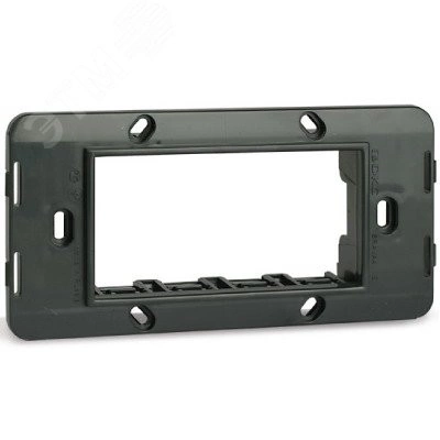 Каркас для монтажа ЭУИ ‘Brava‘ в стены и коробки PDD-N60. Назначение- монтаж ЭУИ ‘Brava‘. Характеристики- соединения 2-х и более каркасов между собой, имеются специальные выступы и пазы, ЭУИ ‘Brava‘ защелкиваются в каркасы изнутри (с задней стороны), Требования к коробке- диаметр встраиваемой коробки должен быть 65-68 мм, глубина от 40 мм и более, межосевое расстояние (при монтаже 2-х и более коробок) ? 71 мм. Кол-во модулей- 4. Цвет- черный
