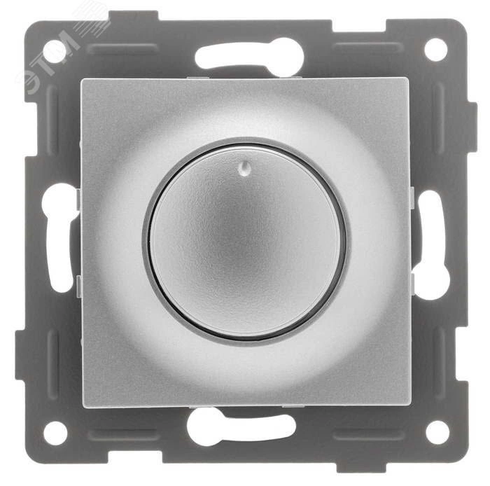 Механизм диммера предназначен для коммутации и регулирования яркости ламп накаливания и галогеновых ламп. При повороте ручки регулятора происходит регулирование, в крайнем левом положении выключение. Устанавливается в монтажные коробки или специальные монтажные полости при скрытой проводке электрических сетей. Диммер позволяет производить монтаж, как при помощи распорных лапок, так и на резьбовые элементы в монтажной коробке.