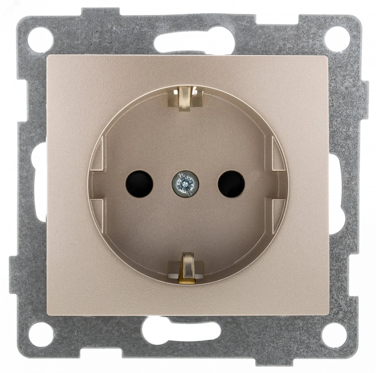 Полное описание: Bravo Розетка одинарная, с боковым заземляющим контактом, с защитой от проникновения, скрытая установка, 16А, 250В. шампань