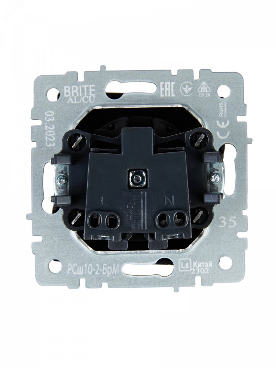 BRITE Розетка 1 пост без заземления с защитными шторками 10А РСш10-2-БрМ маренго IEK