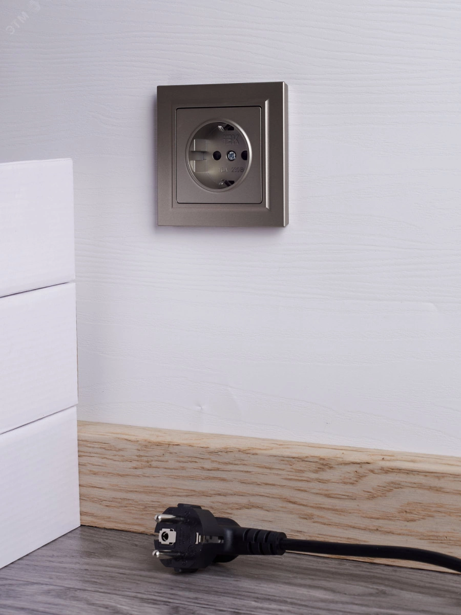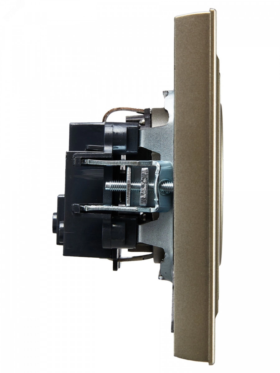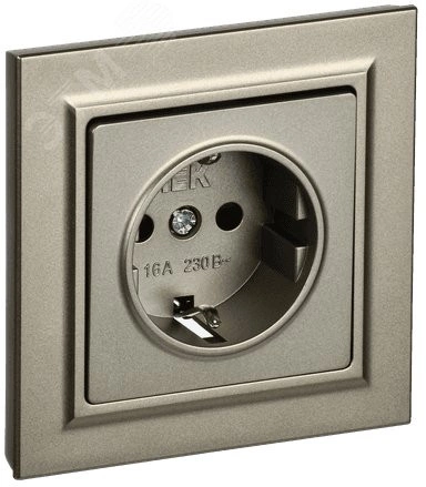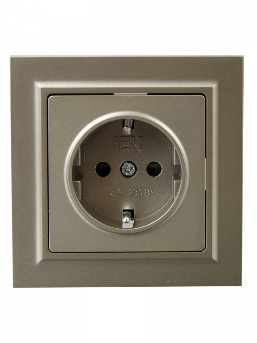 BRITE Розетка 1 пост с заземлением с защитными шторками 16А в сборе РСР14-1-0-БрШ шампань IEK