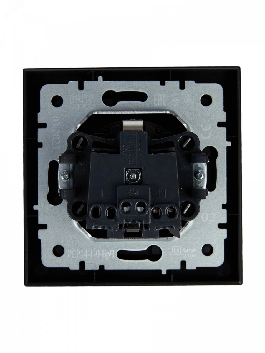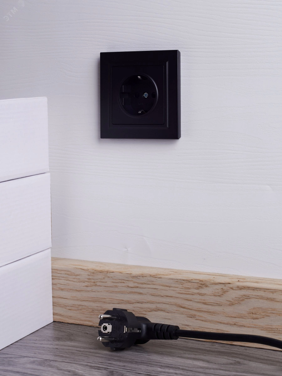 BRITE Розетка 1 пост с заземлением с защитными шторками 16А в сборе РСР14-1-0-БрЧ черный IEK