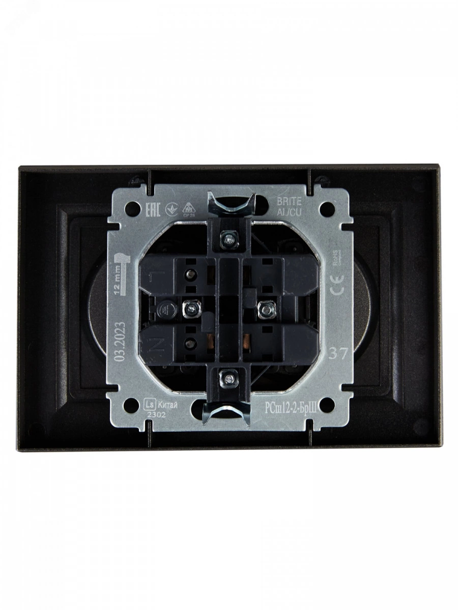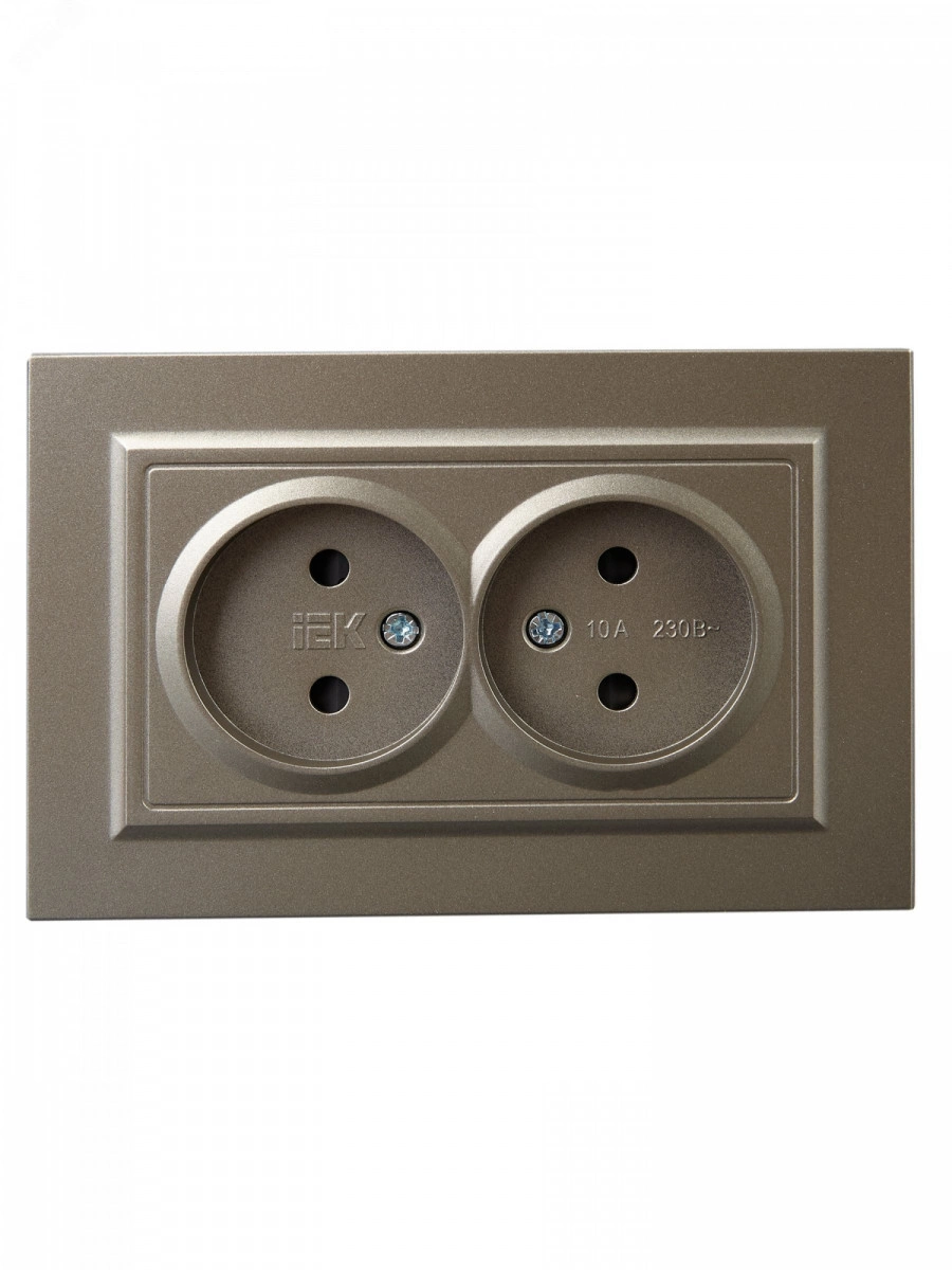 BRITE Розетка 2-местная без заземления с защитными шторками 10А в сборе РСш12-2-БрШ шампань IEK