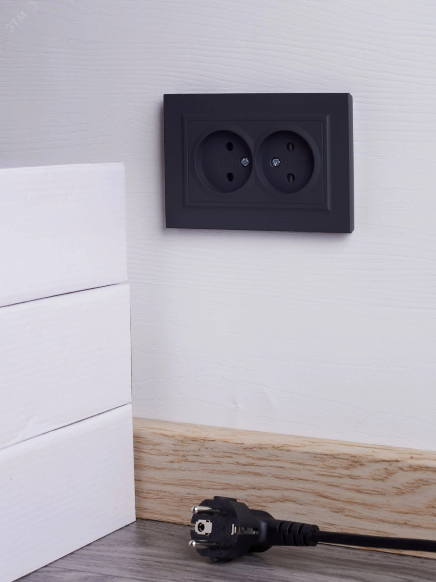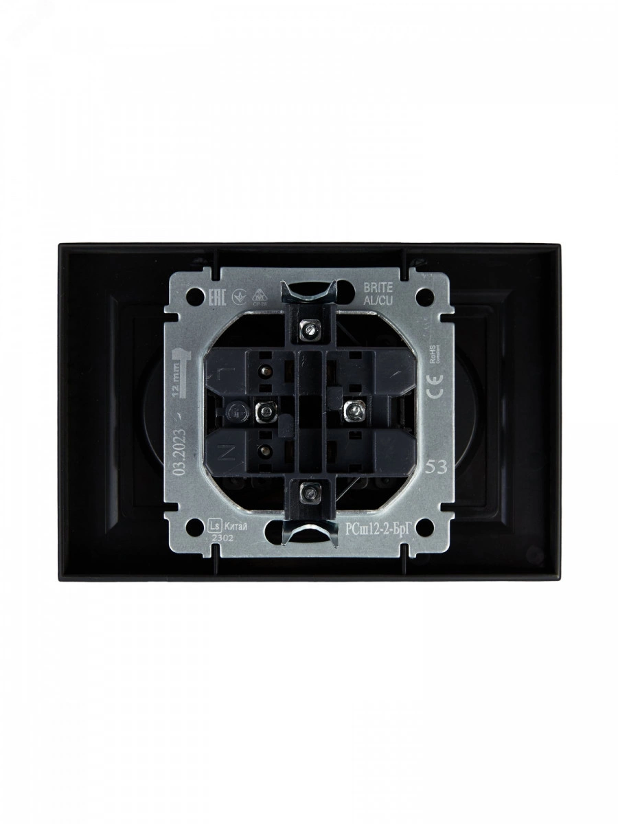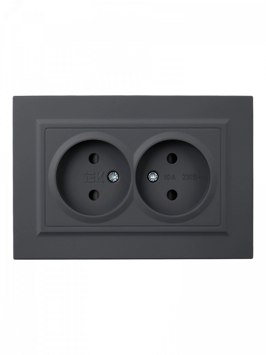 BRITE Розетка 2-местная без заземления с защитными шторками 10А в сборе РСш12-2-БрГ графит IEK