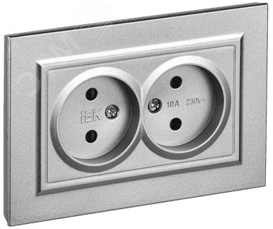 BRITE Розетка 2-местная без заземления с защитными шторками 10А в сборе РСш12-2-БрА алюминий IEK