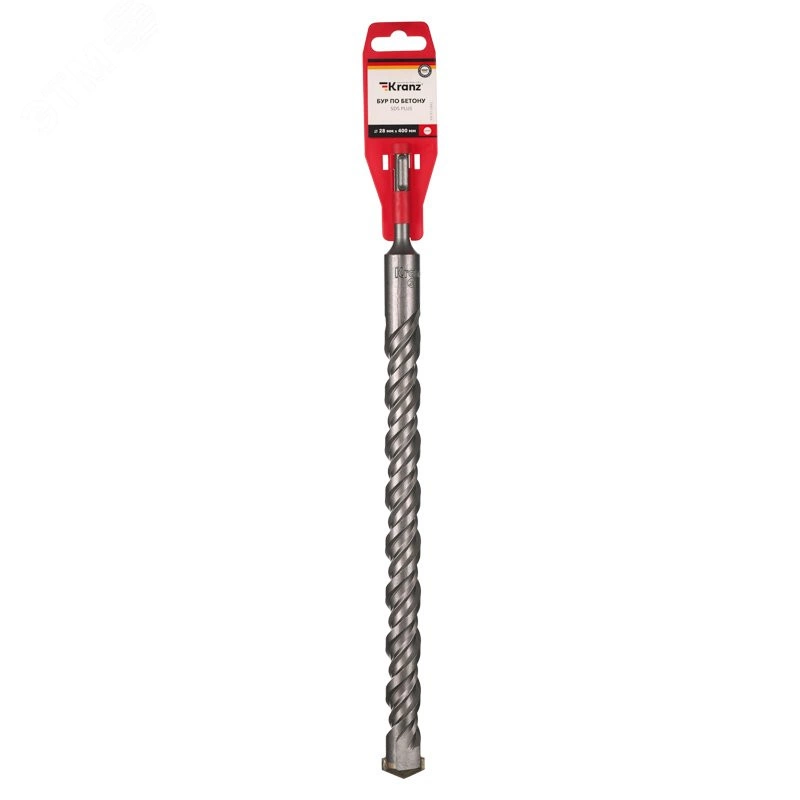 Бур по бетону с хвостовиком SDS-plus 28x400 мм KRANZ используется во время строительных и ремонтных работ. Предназначен для сверления и бурения отверстий в слабоармированном бетоне, граните, кирпичной кладке и камне при помощи перфоратора с креплением SDS-plus. Изделие выполнено из качественной стали, что обеспечивает долгий ресурс работы и высокую производительность. Конструкция со стабилизирующей спиралью сохраняет точное положение бура во время сверления и равномерно распределяет ударную нагрузку, кромки с 2 гранями обеспечивают легкое выведение шлама и мелких частиц пыли из рабочей зоны, что поддерживает скорость работы, а усиленный резец предотвращает заклинивание оснастки в арматуре. Твердосплавная вставка на конце бура способствует эффективному входу в материал, что увеличивает цикл службы оснастки и уменьшает износ сверла.