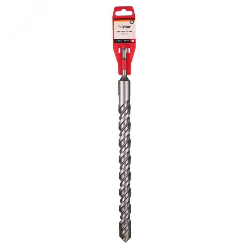 Бур по бетону с хвостовиком SDS-plus 30x400 мм KRANZ используется во время строительных и ремонтных работ. Предназначен для сверления и бурения отверстий в слабоармированном бетоне, граните, кирпичной кладке и камне при помощи перфоратора с креплением SDS-plus. Изделие выполнено из качественной стали, что обеспечивает долгий ресурс работы и высокую производительность. Конструкция со стабилизирующей спиралью сохраняет точное положение бура во время сверления и равномерно распределяет ударную нагрузку, кромки с 2 гранями обеспечивают легкое выведение шлама и мелких частиц пыли из рабочей зоны, что поддерживает скорость работы, а усиленный резец предотвращает заклинивание оснастки в арматуре. Твердосплавная вставка на конце бура способствует эффективному входу в материал, что увеличивает цикл службы оснастки и уменьшает износ сверла.
