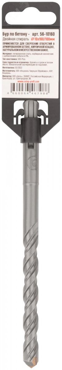 Бур по бетону GreatFlex Light предназначен для бурения бетона, камня, гранита и кирпича. Для профессионального использования. Карбидный наконечник повышенной плотности с добавлением 6 % кобальта гарантирует длительную работу бура без изменения диаметра. Двойная спираль сохраняет постоянную скорость бурения. Легированная инструментальная сталь с добавлением хрома увеличивает износостойкость бура к истиранию. Хвостовик типа SDS-PLUS быстро и прочно фиксируется в патроне электроинструмента.