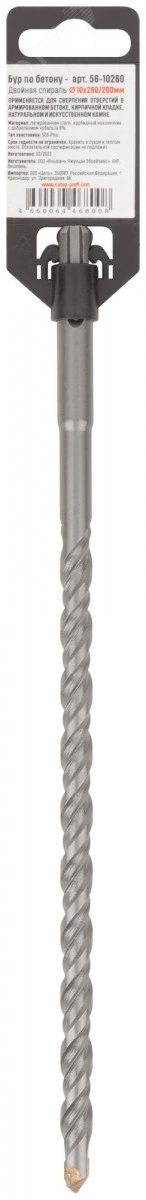 Бур по бетону GreatFlex Light предназначен для бурения бетона, камня, гранита и кирпича. Для профессионального использования. Карбидный наконечник повышенной плотности с добавлением 6 % кобальта гарантирует длительную работу бура без изменения диаметра. Двойная спираль сохраняет постоянную скорость бурения. Легированная инструментальная сталь с добавлением хрома увеличивает износостойкость бура к истиранию. Хвостовик типа SDS-PLUS быстро и прочно фиксируется в патроне электроинструмента.