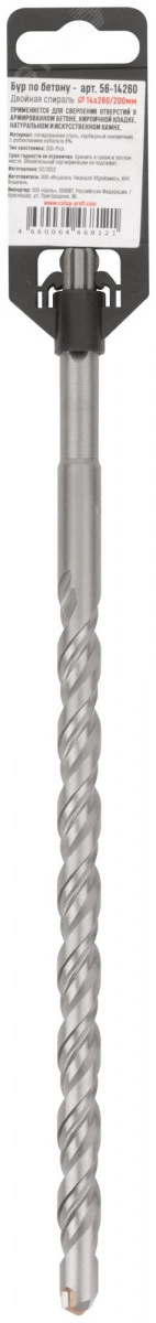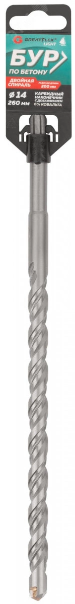 Бур по бетону GreatFlex Light предназначен для бурения бетона, камня, гранита и кирпича. Для профессионального использования. Карбидный наконечник повышенной плотности с добавлением 6 % кобальта гарантирует длительную работу бура без изменения диаметра. Двойная спираль сохраняет постоянную скорость бурения. Легированная инструментальная сталь с добавлением хрома увеличивает износостойкость бура к истиранию. Хвостовик типа SDS-PLUS быстро и прочно фиксируется в патроне электроинструмента.