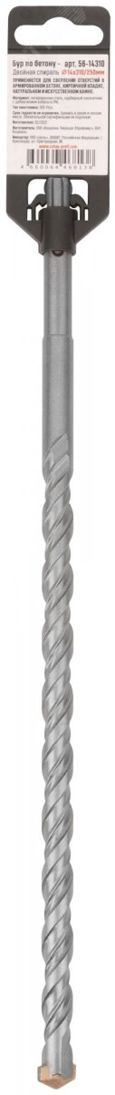 Бур по бетону GreatFlex Light предназначен для бурения бетона, камня, гранита и кирпича. Для профессионального использования. Карбидный наконечник повышенной плотности с добавлением 6 % кобальта гарантирует длительную работу бура без изменения диаметра. Двойная спираль сохраняет постоянную скорость бурения. Легированная инструментальная сталь с добавлением хрома увеличивает износостойкость бура к истиранию. Хвостовик типа SDS-PLUS быстро и прочно фиксируется в патроне электроинструмента.