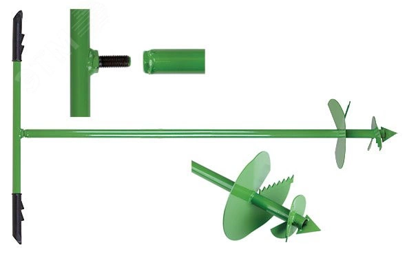 Бур садовый шнековый. Разборный , с возможностью увеличения длины за счет использования удлинителя 77248. Для ручного формированияскважин в грунте, предназначенных для установки различных опор, столбов, заливки свайных фундаментов и т.д. Материал - инструментальная сталь .