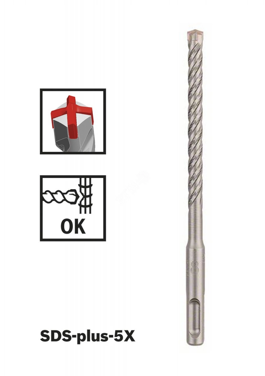 Сверло обеспечивает высокоэффективное сверление железобетона. Геометрическая форма наконечника с 4 режущими кромками предотвращает заедание и поломку, обеспечивая оптимальные результаты. Наконечник с «углом поворота» и широкие, короткие каналы для удаления пыли в 4-спиральной конструкции быстро удаляют пыль, поэтому сверло быстро и с минимальным износом проходит бетон и арматуру. Для эффективного сверления отверстий точно необходимого диаметра центрирующий наконечник направляет сверло с самого начала, предотвращая его увод, который может повлиять на диаметр отверстия. Сверло предназначено для каменной кладки, бетона и железобетона. Качество сверла подтверждает отметка о прохождении теста комиссии ассоциации по сверлам по бетону PGM, что гарантирует соответствие жестким допускам, точности сверления и надежности установки крепежных деталей. Подходит для перфораторов с держателем SDS plus.