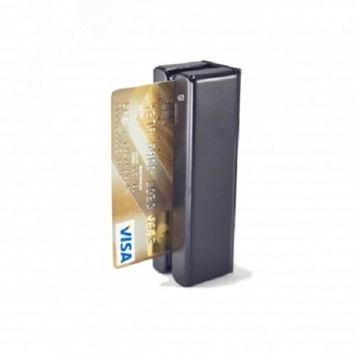 "Для считывания магнитных карт необходимо провести карту сверху вниз через щель, сориентировав ее относительно считывателя магнитной полосой к светодиоду. Основным элементом считывателя карт является магнитная головка, аналогичная магнитофонной. Считыватель имеет до 500 тыс. циклов считывания, скорость проведения картой через считывающее устройство может варьироваться от 10 до 120 сантиметров в секунду. Защищенная банковская информация с других полос карты не может быть считана, в том числе данные о владельце карты, номере счета и т.д. Считыватель, используемый в составе системы, имеет интерфейс связи Clock&Data TTL уровня (однонаправленный проводной интерфейс связи между двумя устройствами - считывателем магнитных карт и управляющим устройством – контроллером замка двери). Считыватель банковских карт Promix-RR.MC.02 работает с контроллером PERCo-SC-820."
