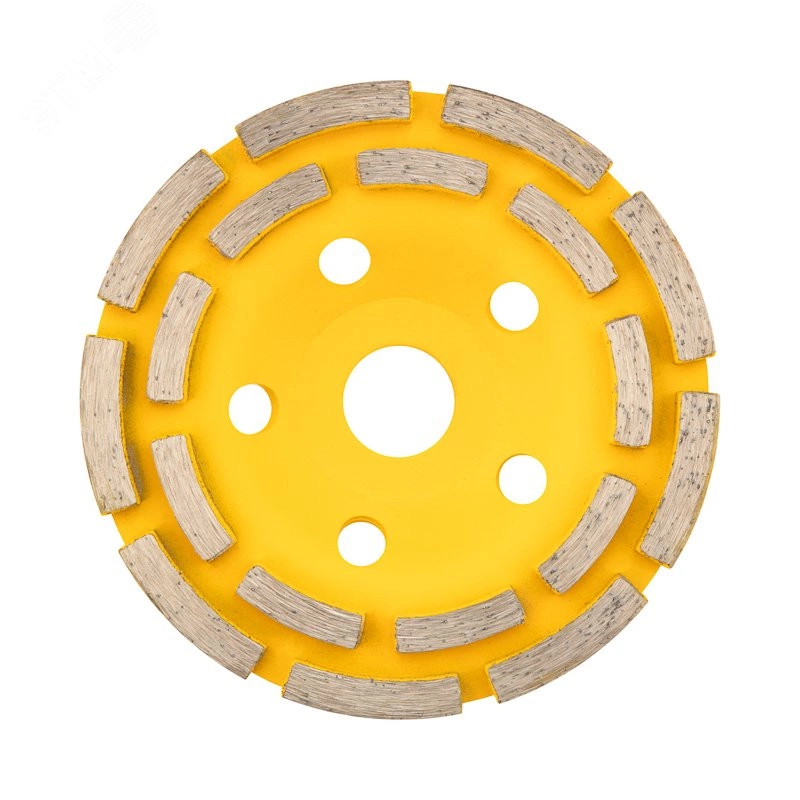 Чашка алмазная зачистная, 125 мм, двухрядная предназначена для интенсивной грубой зачистки бетона, мрамора, камня, кирпича, гранита. Рекомендуются для снятия толстых слоев бетона, удаления швов и наплывов после опалубки. Кроме того применяется для черновой обработки, создания шероховатой поверхности, для последующего нанесения штукатурки, шпатлевки, строительного клея.