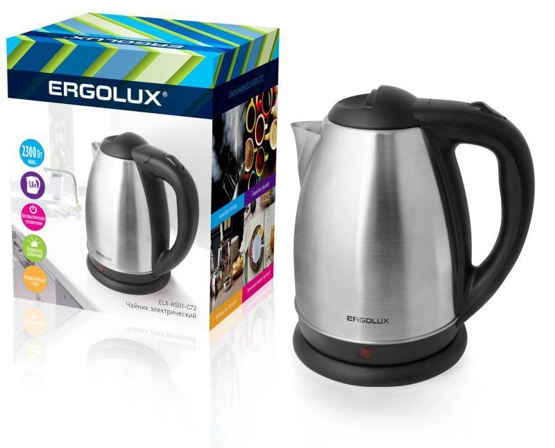 Чайник ELX-KS01-C72 1.8л 1500-2300Вт 160-250В нерж. сталь матов. черн. Ergolux 13120