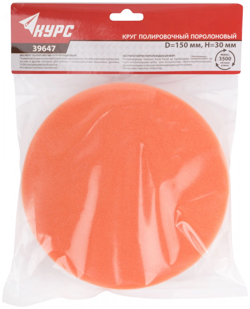 Поролоновый. Для полировки различных материалов с использованием полиролей, восков и других составов. С ворсовой основой под липучку. Для работы с полировальными машинами, дрелями, УШМ с регулировкой оборотов. Материал - поролон, полиэстер. Упаковка - п/э пакет с картонным подвесом.