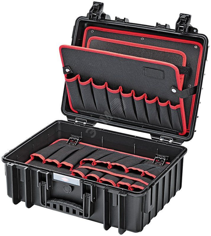 00 21 35 LE инструментальный чемодан ''Robust23'' Для самых сложных рабочих условий - пылезащищенный, водонепроницаемый и термостойкий. Чемодан из ударопрочного полипропилена, пригодный для авиаперевозок. пылеводонепроницаемый. клапан автоматического выравнивания давления. термоустойчивость от - 30°C до + 80°C. приспособление для навесного замка. Отделение для документов, инструментальные панели из двойного грязеотталкивающего полипропилена с карманами и ремнями для инструментов. донная часть с замком, алюминиевые разделители для оформления внутреннего пространства по своему усмотрению. ручки с эргономичными двухкомпонентными чехлами. Всего 49 вариантов вставок. - Размер - Ширина внешняя (внутренняя) - 470mm 437mm - Размер - Высота внешняя (внутренняя) - 190mm 172mm - Размер - Глубина внешняя (внутренняя) - 370mm 307mm